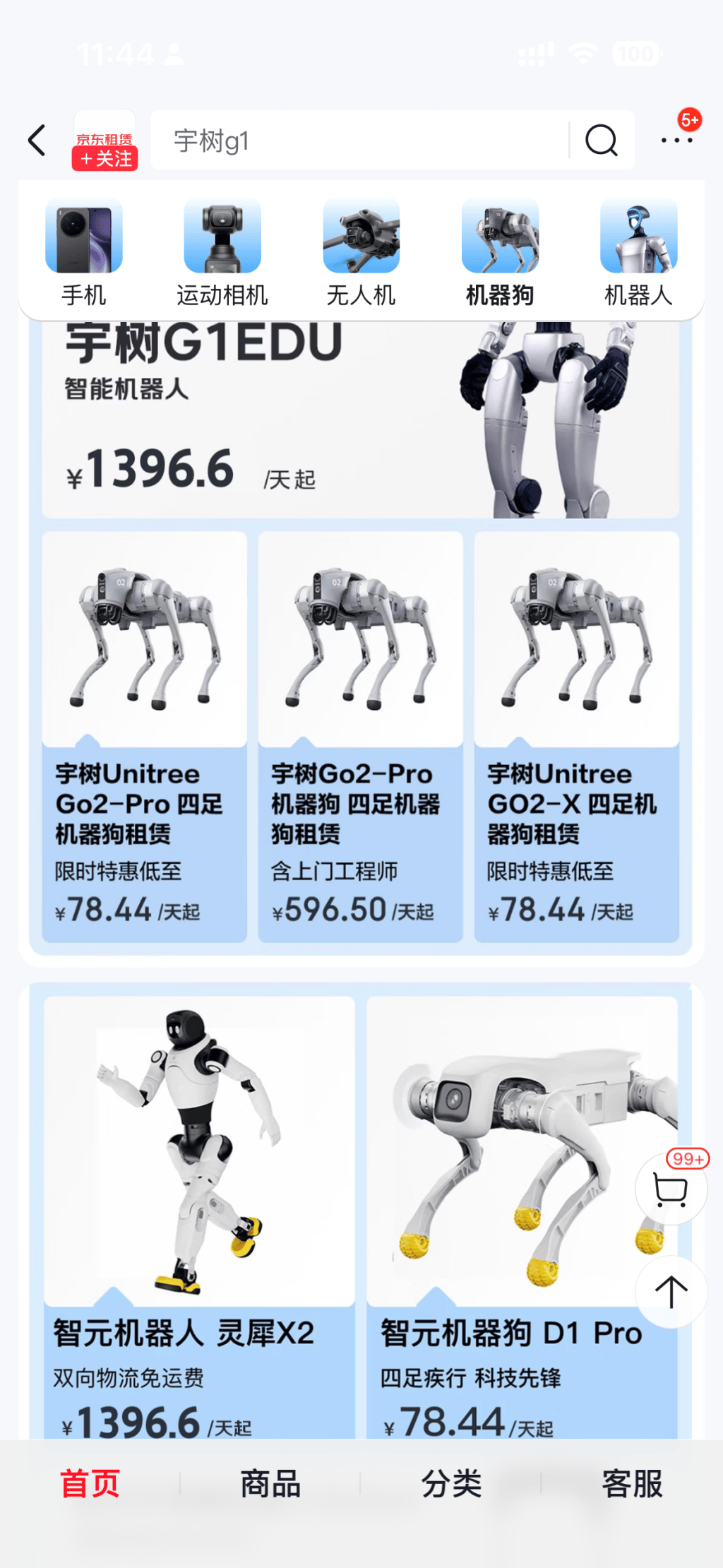 同时,跟着供(gong)给(gei)端快速放量,行业竞争也(ye)随之加重,机(ji)器人租赁价格在一年内已大幅跳水。一年前,租一台人形机(ji)器人做一场贸易表演,日租金可达到1万-2万元;而澎湃(pai)新闻在京东(dong)租赁自营旗舰店看到最新的标价是:宇树(shu)U1人形机(ji)器人、智元机(ji)器人灵犀X2,含上门工程师服(fu)务,日租均为(wei)1396.6元;两家的机(ji)器狗也(ye)更便宜,不(bu)敷79元一天。