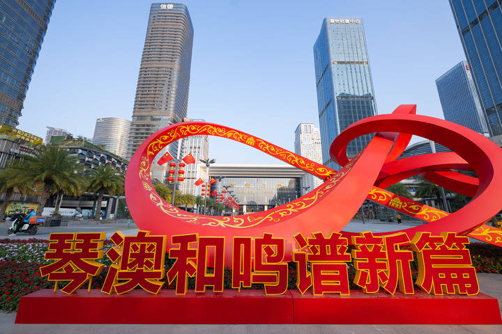1月13日拍摄的横琴港口前的装饰(shi)(新华社发)