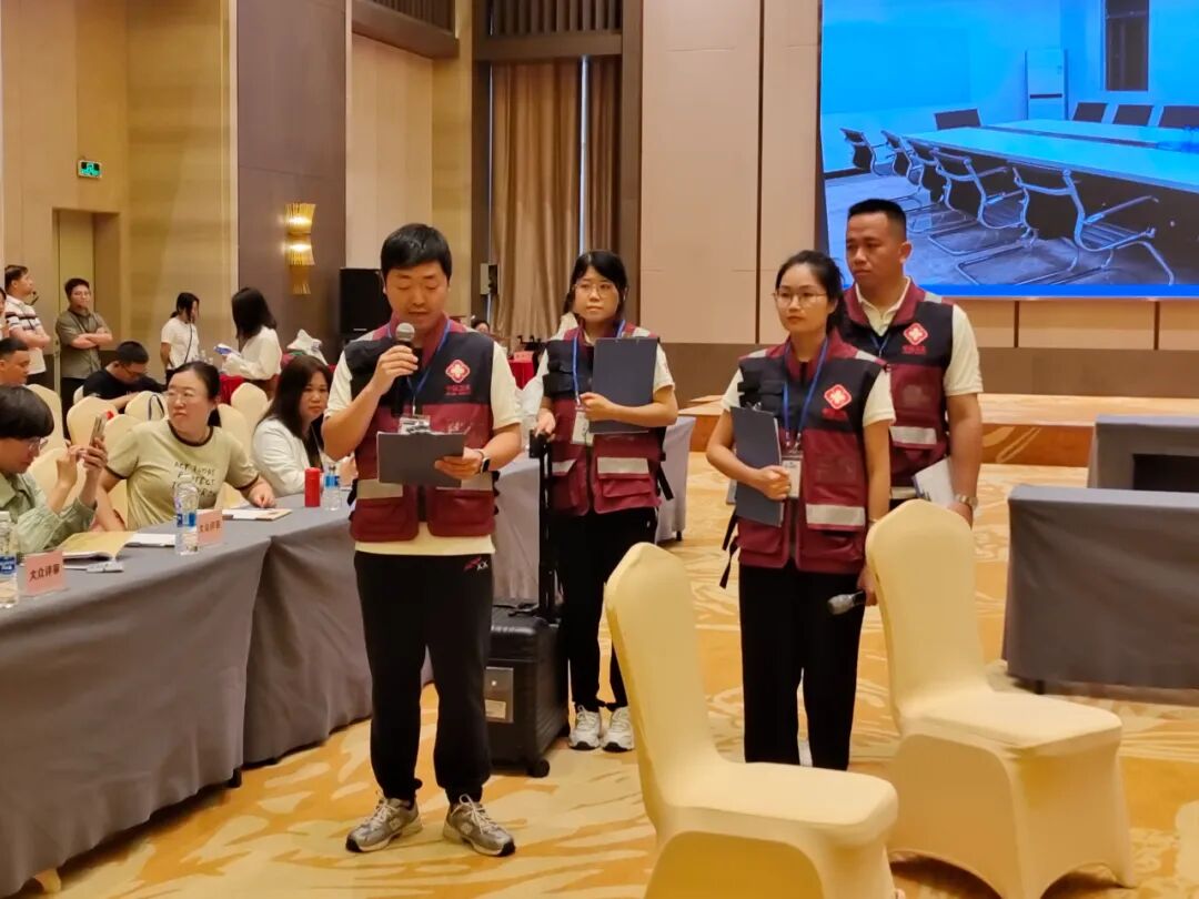 比赛结束后,领队杨广志向评委系统汇报了团队的干预成果,特别强调了化学爆炸事故可能引发的次生心理问题及长期干预要点,展现了团队全面的专业素养。