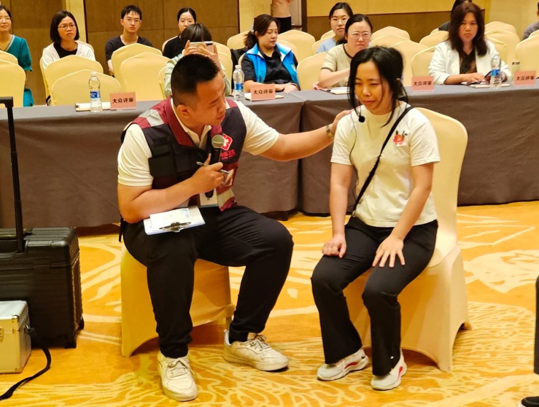 在个体干预环节,来自广州圣泉医院的队员曹永欣凭借专业的心理干预技术,成功帮助模拟案例中的遇难者家属稳定情绪。通过运用共情倾听、情绪稳定化等技术手段,有效缓解了家属的悲痛情绪,并为其制定了后续的心理康复计划。