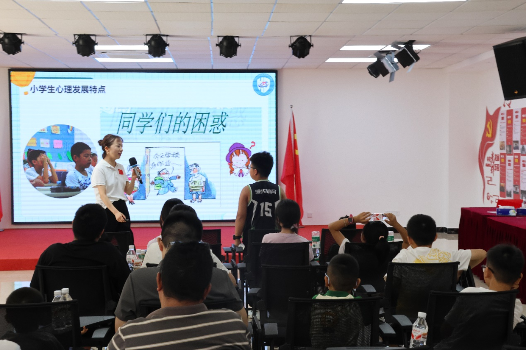 花都区疾控中心精神卫生部部长庞永慧则为大家带来了儿童青少年暑假心理健康教育讲座,她结合案例讲解青少年常见心理问题及应对方法,鼓励孩子们认识情绪、辨别情绪和表达情绪,并指出自信心是成功的基石,呼吁孩子们多用积极的语言暗示自己,也鼓励家长关注孩子的进步,及时给予孩子肯定。