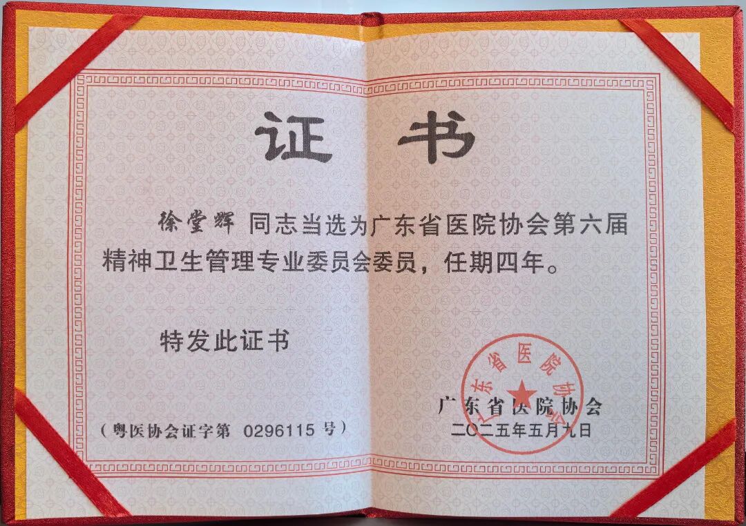 另我院徐堂辉主任当选为广东省医院协会第六届精神卫生管理专业委员会委员。