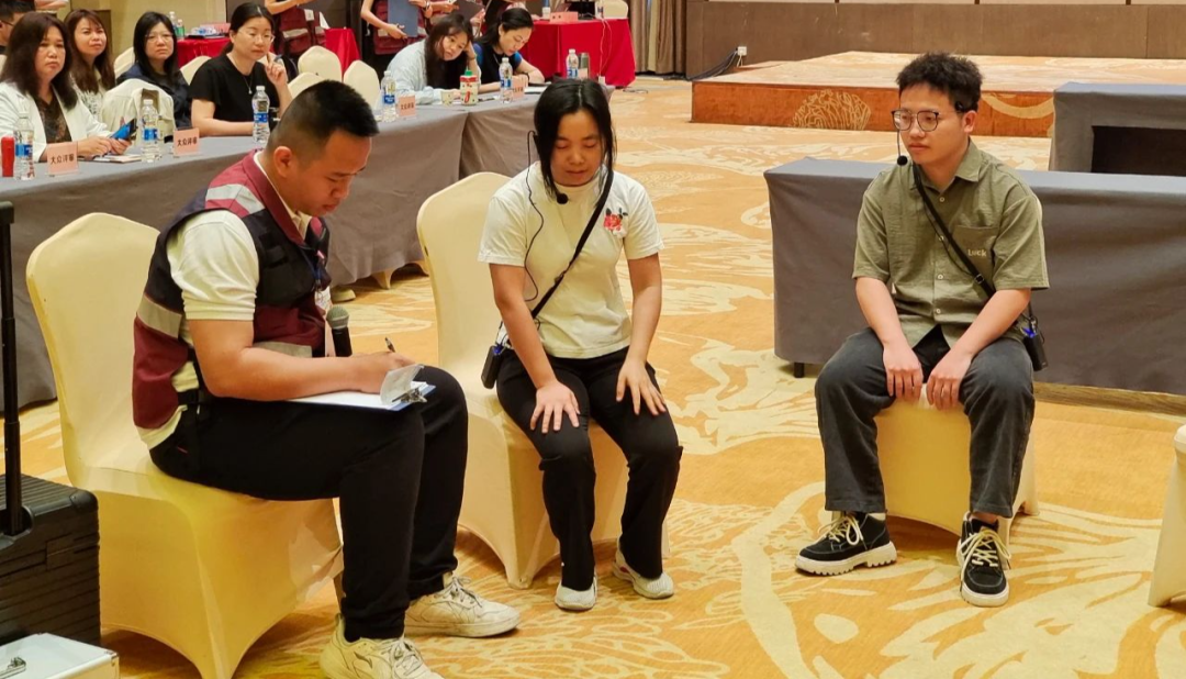 在个体干预环节,来自广州圣泉医院的队员曹永欣凭借专业的心理干预技术,成功帮助模拟案例中的遇难者家属稳定情绪。通过运用共情倾听、情绪稳定化等技术手段,有效缓解了家属的悲痛情绪,并为其制定了后续的心理康复计划。