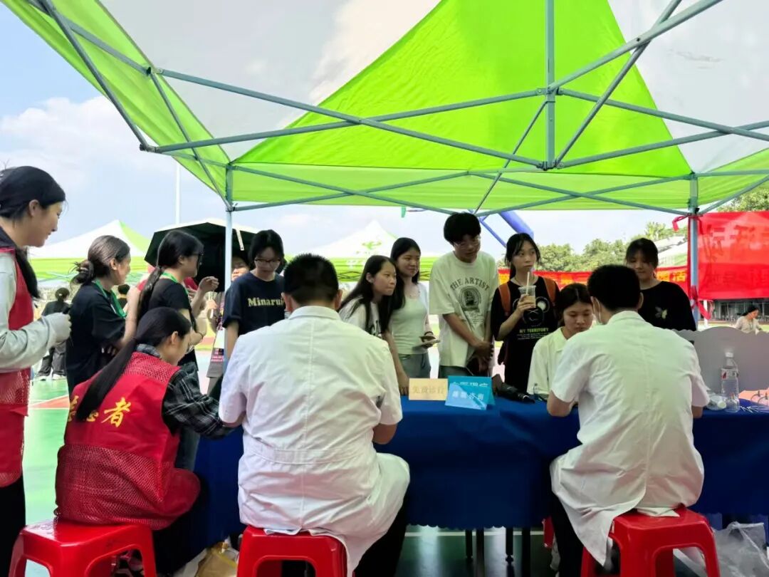 在广州圣泉医院的摊位前,心理科曹永欣主任带着温暖的笑容,为同学们提供一对一心理咨询服务。面对学业压力、睡眠困扰和情绪焦虑,曹主任用专业的认知行为疗法(CBT)帮助大家找到问题的根源,并给出实用的建议。“不要和情绪对抗,试着接纳它,慢慢调整。”——这样接地气的指导让同学们豁然开朗。现场还设置了心理测评区,不少同学通过简单的测试更了解自己的心理状态,纷纷表示:“原来我的压力来自这里,现在知道怎么调整了!”