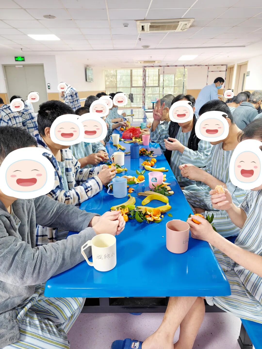 特别令人动容的是老年精神科的温馨场景。考虑到部分老年患者行动不便,医护人员不仅将水果剥好、分成小块,更贴心地将香蕉和橘子送到患者嘴边。“您慢慢吃,不着急。”医护们轻声细语地喂行动不便的患者吃橘子,动作自然轻柔。这种超越常规护理的细致关怀,让节日温暖直抵人心。老年精神科护士长李雅玲表示:“对于活动受限的患者,我们要做的不仅是医疗照护,更是通过每一个细节传递尊重与关爱。”