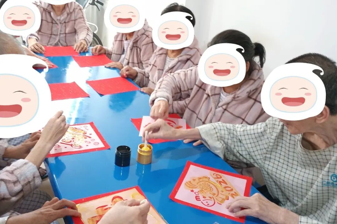 针对老年患者的身体特点,老年精神科特别开设创意拓印活动。创意的拓印工具、喜庆的红纸、温润的金色颜料,让长者们充满好奇。大家在医护人员的协助下,轻握拓包、均匀上色、稳稳按压,一个个饱满立体、寓意吉祥的福字跃然纸上。这项活动不仅温和锻炼了老年患者的手眼协调能力与专注力,更让大家在动手过程中,把新年的福气稳稳“拓”进心里。
