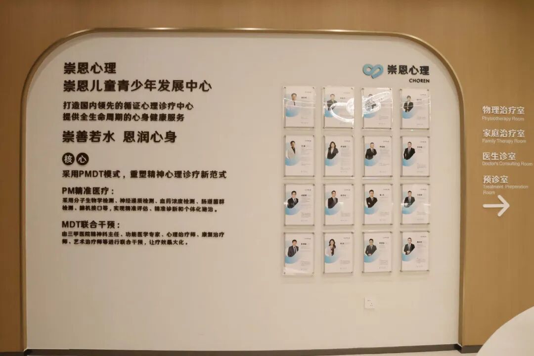 在诊疗技术上,崇恩心理门诊以PMDT精准医疗与多学科联合诊疗模式为核心,组建由精神科医师、临床心理学家、功能医学医师、艺术治疗师、物理康复师等组成的多学科团队,实现“精准评估→精准诊断→个体化施治“的全流程诊疗服务。